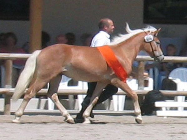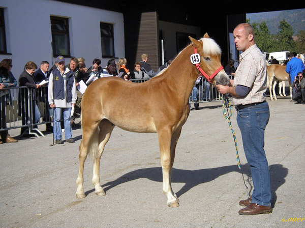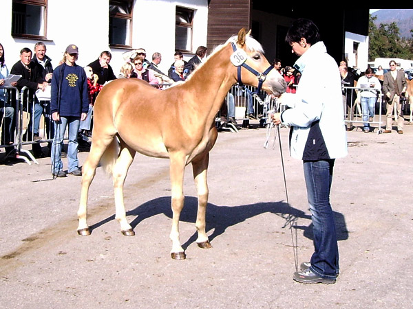 1. Oktober 2000: Haflinger Jungstuten Eliteschau am Fohlenhof in Ebbs - Eliteschau. Die Zuchtbuchnummer wurde geändert auf Elitestute E17005/T Davos.