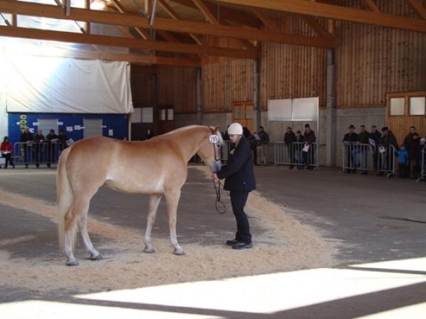Bei dieser Stutbuchaufnahme hat sich die aus unserer EL18181/T Decolores gezogene Jungstute Dara zur Elitestutenschau qualifiziert und wurde anschließend im Endring an die 1. Stelle gereiht.